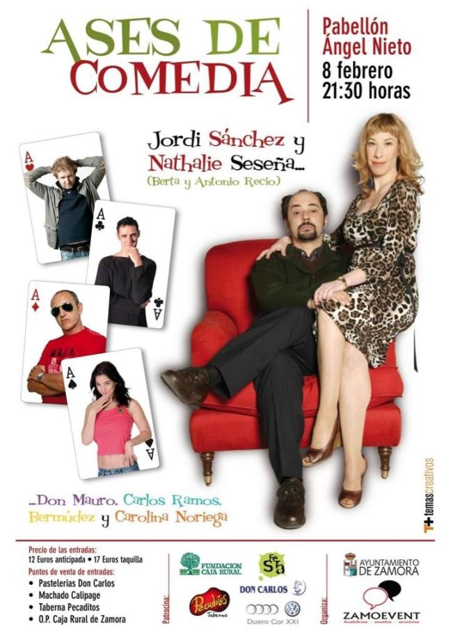 El próximo día 8 de Febrero, a las 21:30 en el Pabellón Ángel Nieto, podremos disfrutar del humor de Jordi Sánchez y Nathalie Seseña (Berta y Antonio Recio).