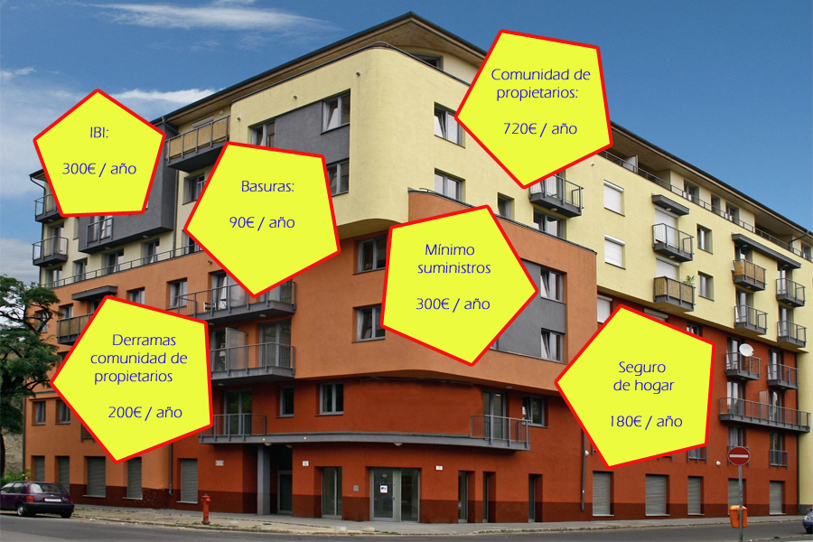 • Mínimos de suministros de luz y agua: Creemos que cualquier propietario debería tener contratado los suministros de agua potable y electricidad, pues a pesar de no utilizar la vivienda, disponer de estos suministros puede ser vital para realizar pequeñas reparaciones o mantenimiento de la vivienda. El importe mínimo de estos suministros puede suponer otros 300€ al año.
