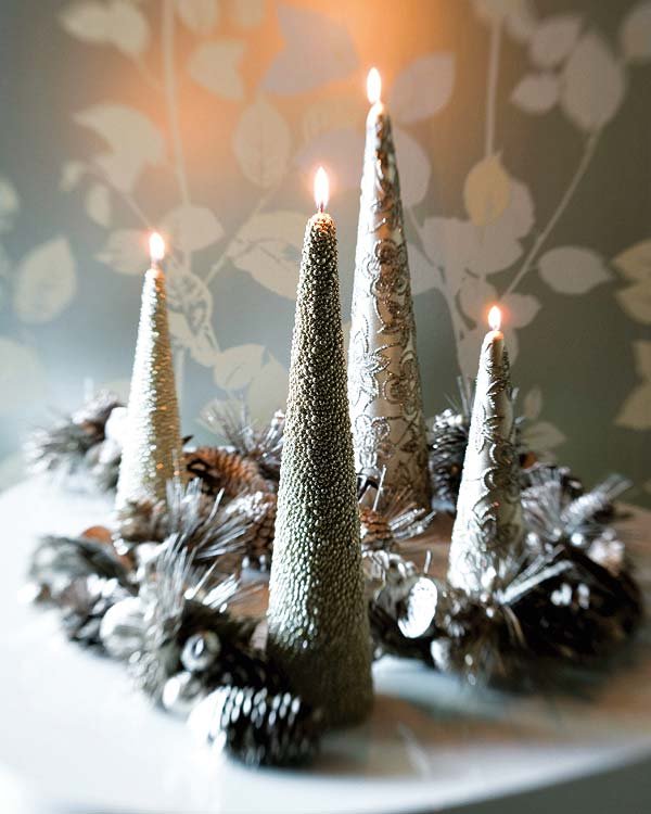 Reserva un espacio en el salón o en la entrada para colocar un bonito centro navideño. Hazlo tú misma para que resulte más personal. No necesitas grandes elementos, sólo algunos adornos que tengas por casa: piñas, bolas,… Otra opción son las velas; una solución con la que además de decorar crearás ambientes muy íntimos en las veladas nocturnas. Agrúpalas en una bandeja bonita o simplemente sobre la mesa rodeadas por una guirnalda a juego.