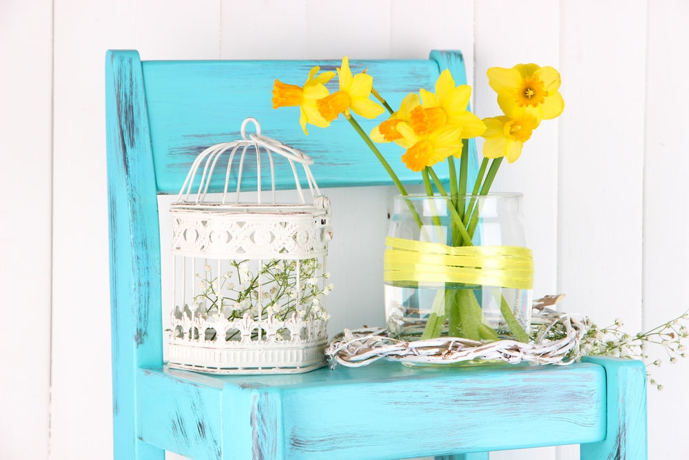 Jaulas: Las jaulas se han puesto de moda, y son un accesorio muy primaveral. Es importante que escojas jaulas vintage o antiguas, ya que tienen más detalles. Para darles un estilo moderno, puedes pintarlas con pintura en aerosol de colores brillantes, como fucsia, turquesa o amarillo. No necesitan tener pájaros pero puedes poner unos de cerámica si quieres. Quedan muy bonitas con grandes flores o mariposas.